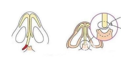 第四步:在鼻孔内缘切开一个切口,在假体上开一个通道,取出假体。
