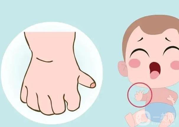 多指畸形是常见的先天性畸形之一。有些多余的手指(脚趾)是遗传的,比如中指和小指的多余手指就是常染色体显性遗传畸形。第四指,也就是无名指、中指、小指畸形都有自己独特的表现。镜手(尺手)、五指长等复杂畸形也属于多余手指,重复性畸形可分为桡侧(拇指侧)、中侧、尺侧(小指侧)三种。简单的重复畸形应在婴儿期尽早切除,复杂的多指畸形应推迟到1岁矫正。浅拇指是指常见的多指。